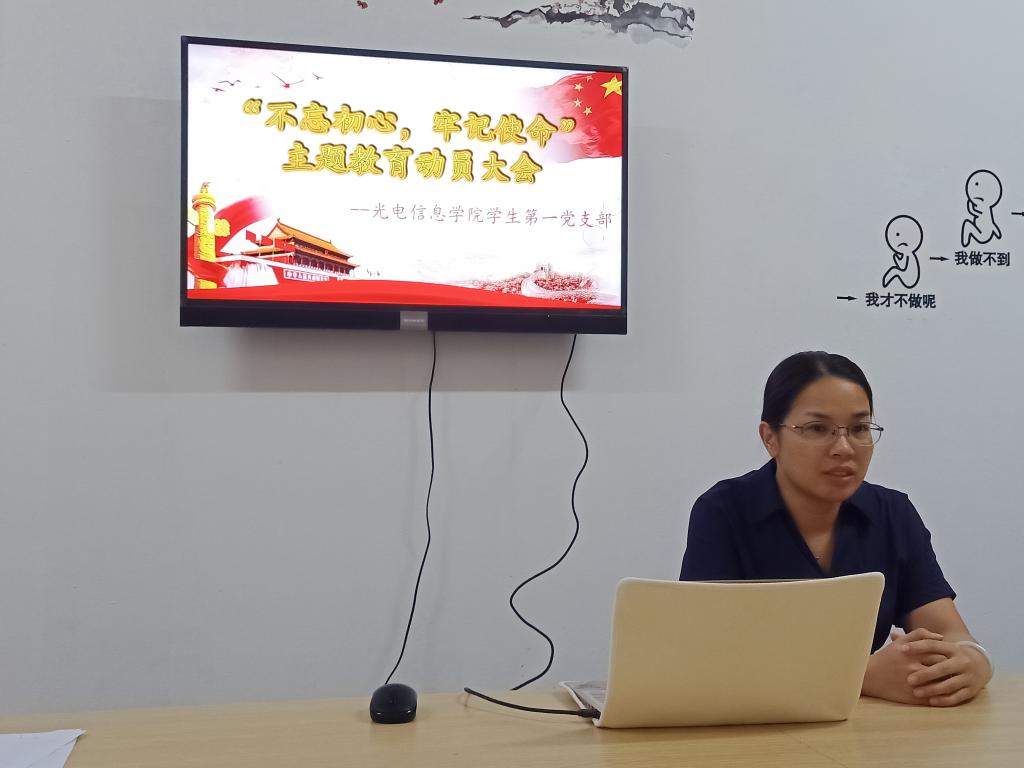 为贯彻落实学院党委、我院党总支关于“不忘初心,牢记使命”专题教育的相关要求,17c·moc起草学生第一党支部于9月26日在学院党团活动室开展“不忘初心,牢记使命”主题教育动员大会暨“践行初心使命”集中学习研讨会。支部党员、部分积极分子代表参加会议,会议由支部书记黄洪梅同志主持。