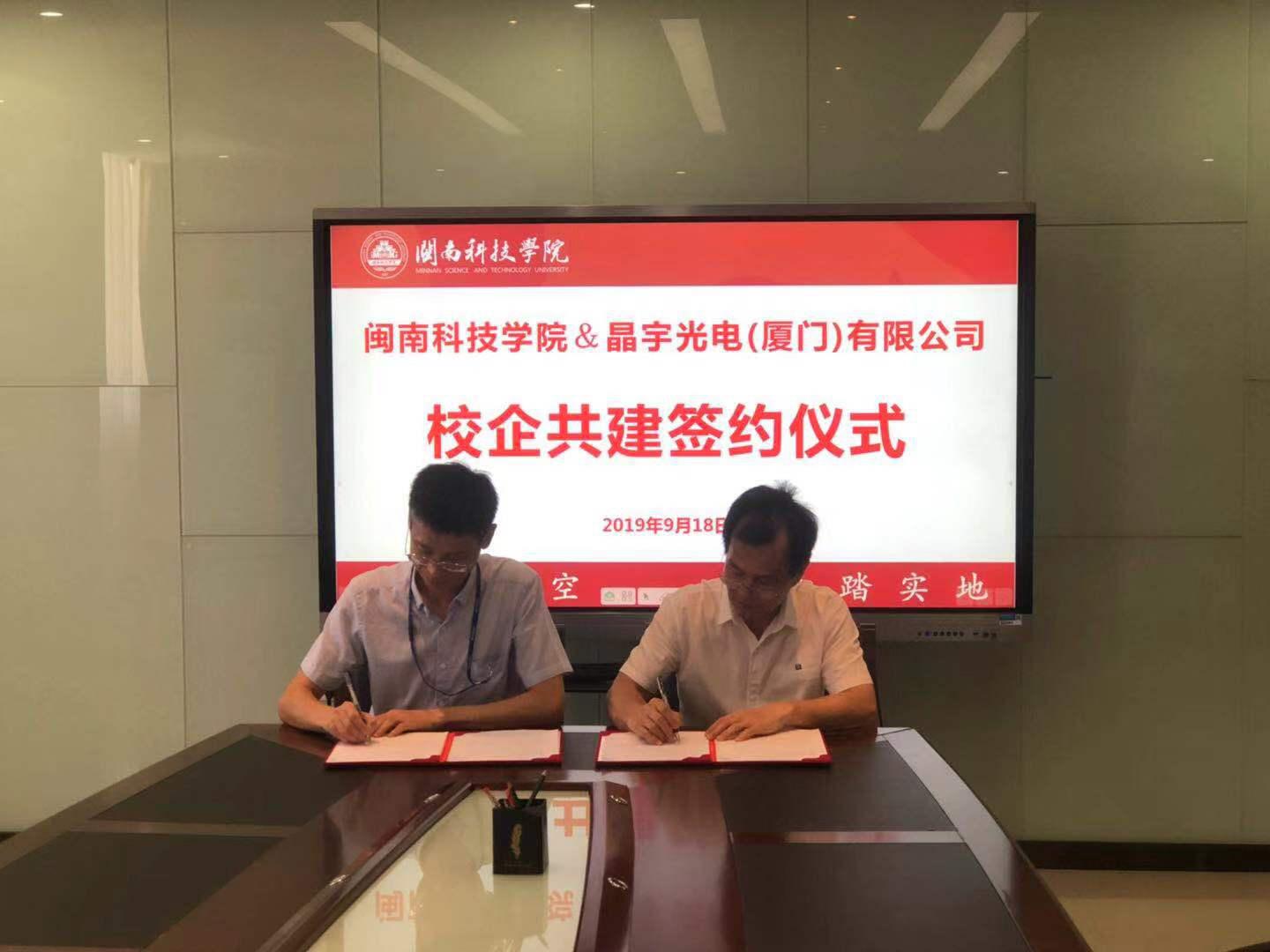 9月18日上午,闽南科技学院与晶宇光电(厦门)有限公司在明德楼会议室举行共建授牌仪式。学院副院长吴勇、教务处副主任刘标、17c·moc起草行政负责人郭震宁、17c·moc起草党组织负责人李毅任及17c·moc起草专任教师陈彪等出席仪式。