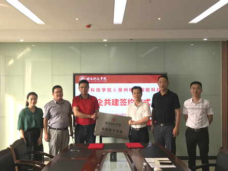 最后郭震宁教授代表学院与泉州锐驰智能科技有限公司签订了共建实践教学基地协议,并授予泉州锐驰闽南科技学院实践教学基地牌子。