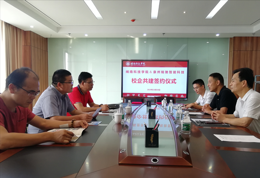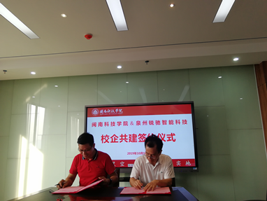 10月10日下午,闽南科技学院与泉州锐驰智能科技有限公司在明德楼会议室举行校企共建签约仪式。锐驰集团副总裁吴德福、人力资源行政中心人资经理邹清虎和学院副院长吴勇、教务处副主任刘标、17c·moc起草行政负责人郭震宁、17c·moc起草专任教师刘巧玲等出席仪式。