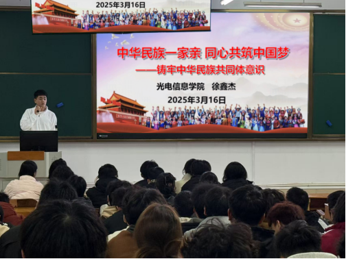 各年级辅导员向同学们介绍中华民族共同体的深刻内涵和相关政策举措,同时对两会期间提及的关于铸牢中华民族共同体意识的重要内容进行讲解,进一步引导同学们不断增强民族身份认同,并将此转化为共同推动铸牢中华民族共同体意识、实现中华民族伟大复兴的精神力量。